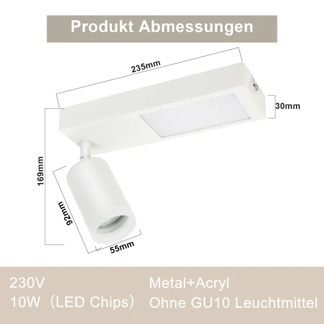 NETTLIFE Stropna svetilka 1 žarnica GU10 spalnica 3000k 20W kuhinjska svetilka črna toplo bela nastavljiva za spalnico kuhinjo
