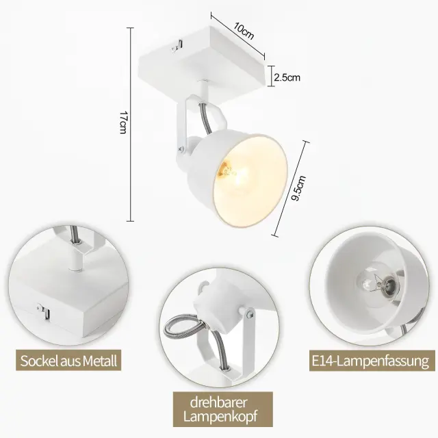 NETTLIFE Stropna svetilka 1 plamen vintage stenska svetilka E14 retro dizajn visokokakovostna nastavljiva MAX. 40 W