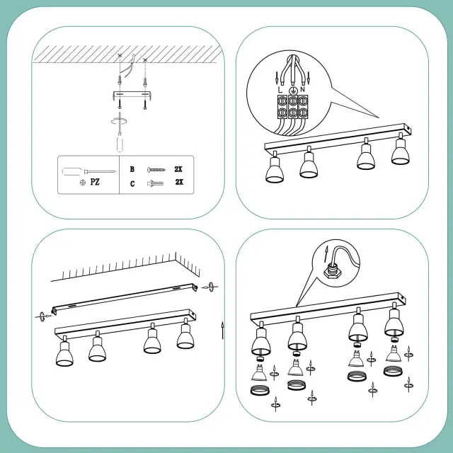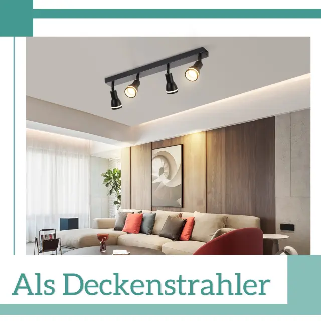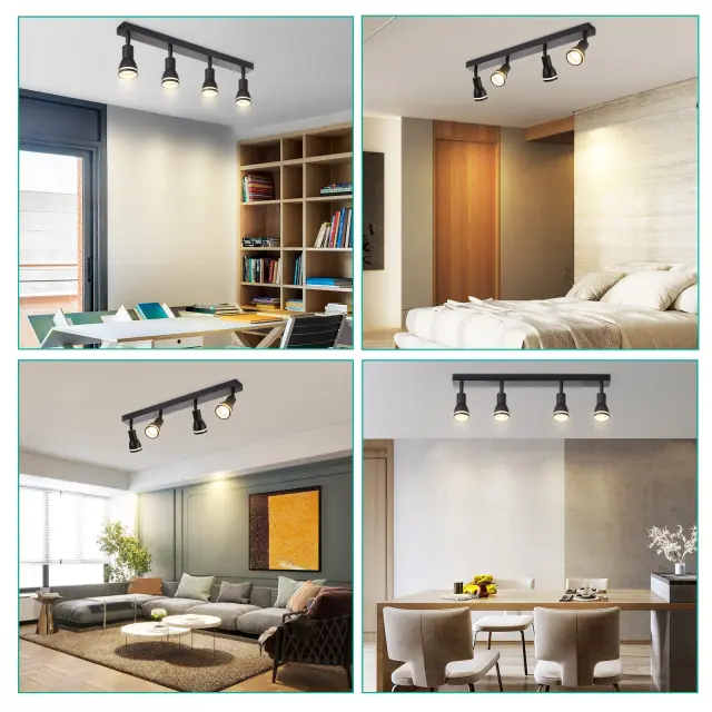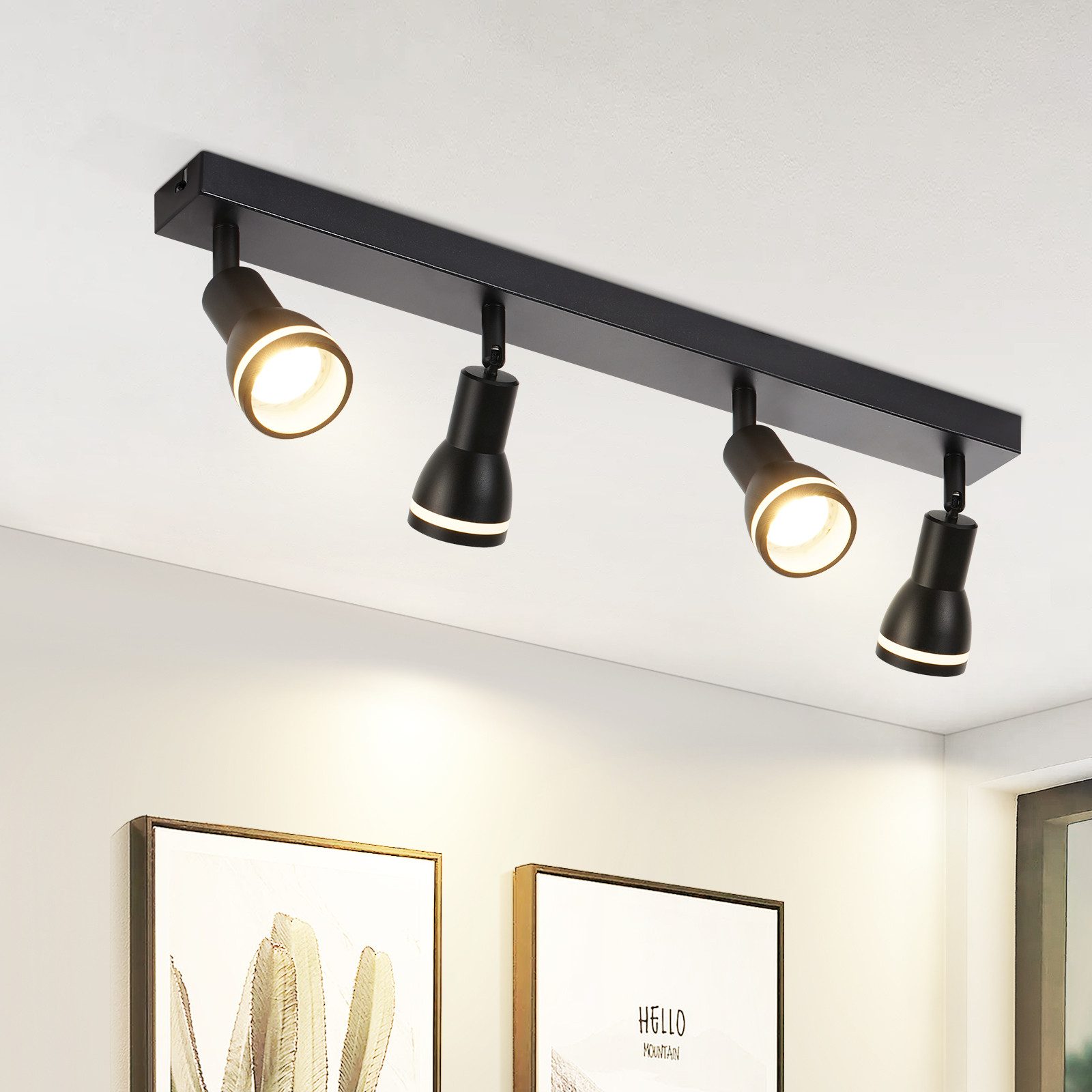 NETTLIFE stropna svetilka s 4 žarnicami, črna: kovinska stropna svetilka GU10, vrtljiva žarnica za dnevno sobo, spalnico, brez žarnic