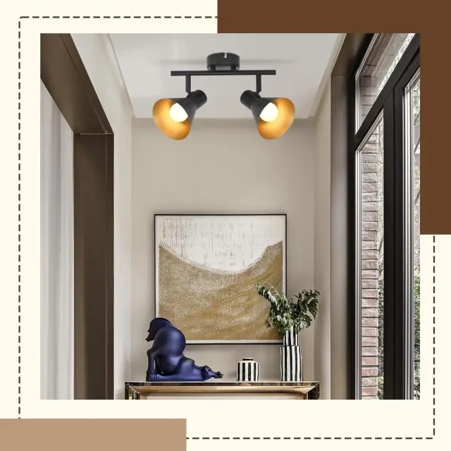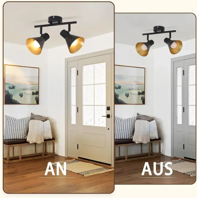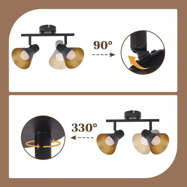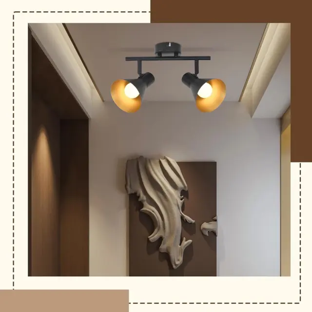 NETTLIFE Stropna svetilka za kuhinjo s 2 reflektorjema, črna, 2 žarnici, E14, vintage, industrijska, retro, kovinska, za vhod v pisarno