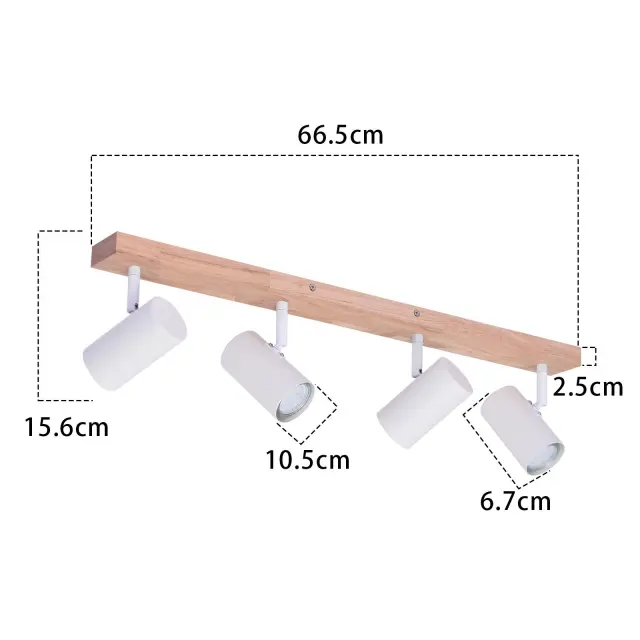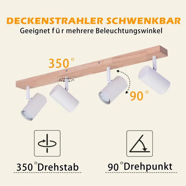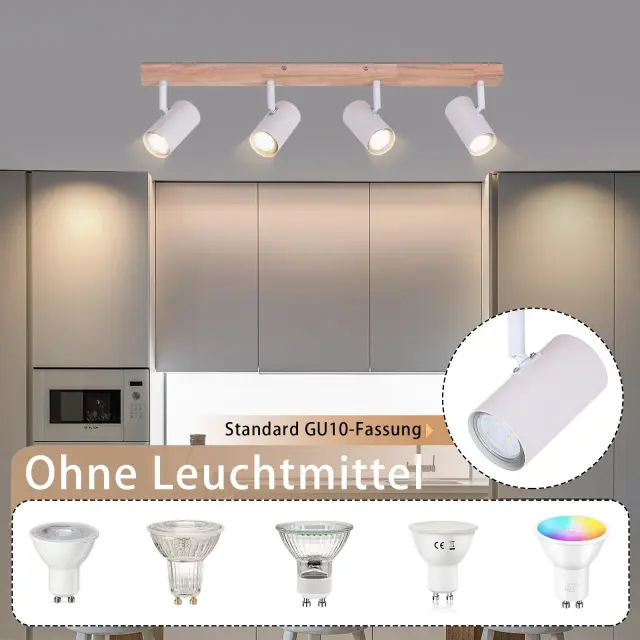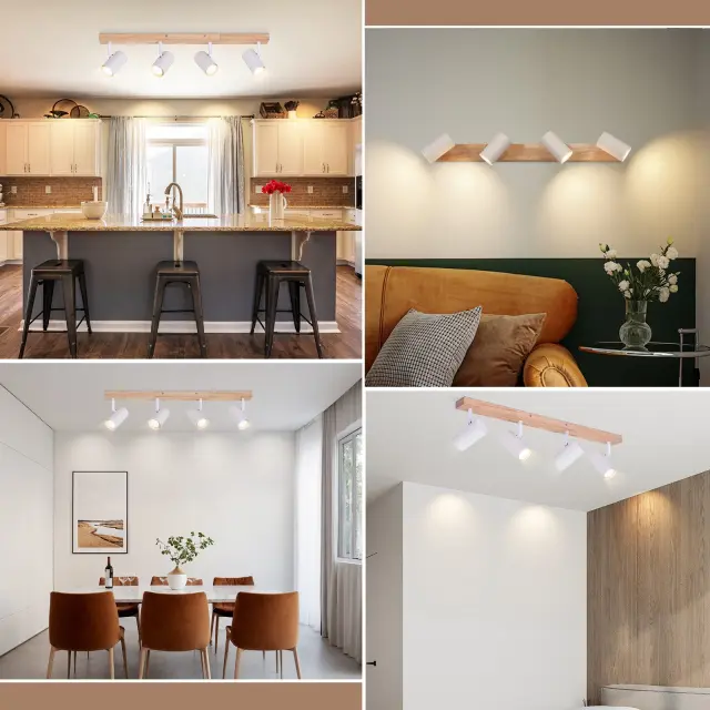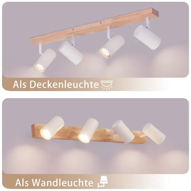 NETTLIFE Stropna svetilka, 4 žarnice, bela lesena, GU10, vintage, vrtljiva