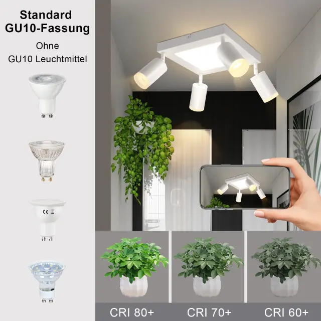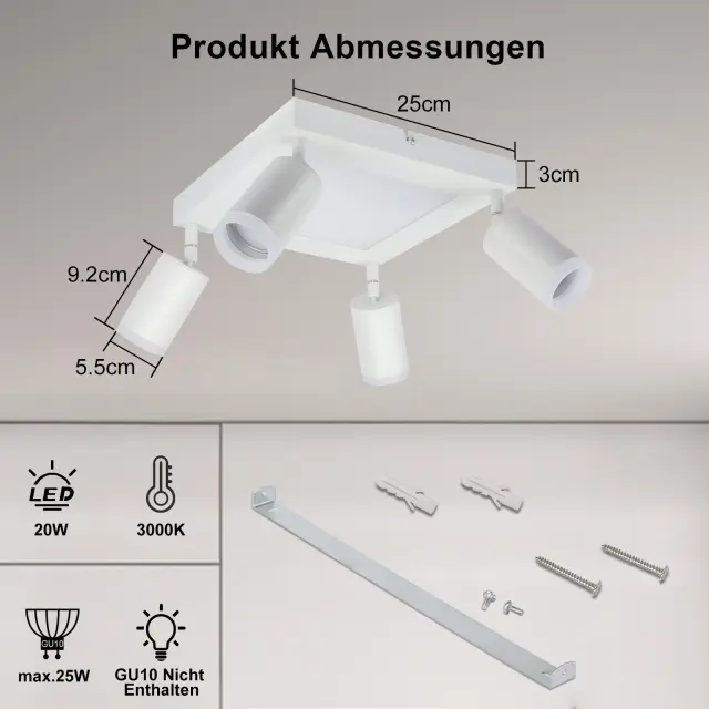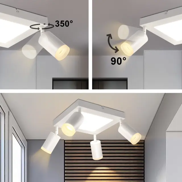 NETTLIFE Stropna svetilka 4 kvadratne žarnice 3000K GU10 enostavna namestitev toplo bela nastavljiva moderna