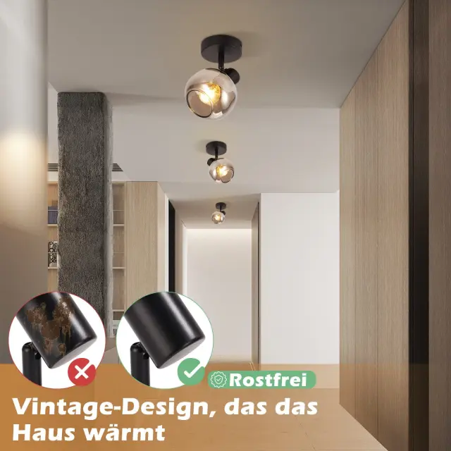 Visokokakovosten material: Stropni reflektor je izdelan iz visokokakovostnega železa in stekla, ne rjavi, enostaven za namestitev in čiščenje. Ta reflektor ima tako topel vintage dizajn kot eleganten industrijski slog, ki lahko domu doda moderen pridih.