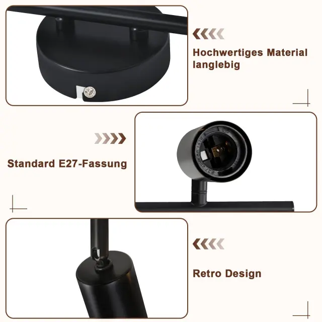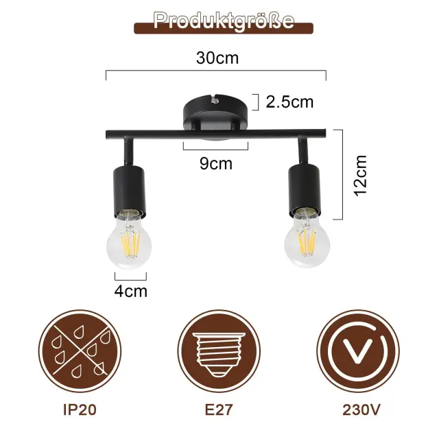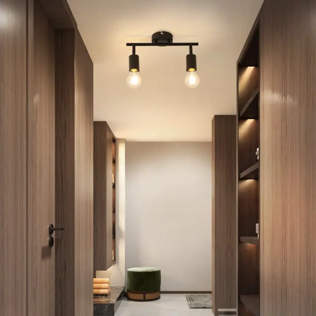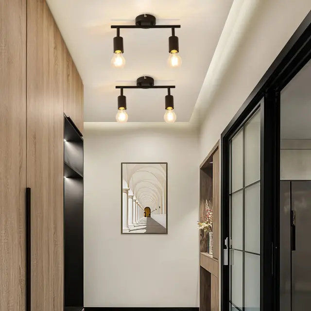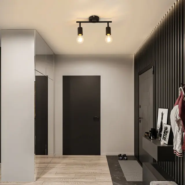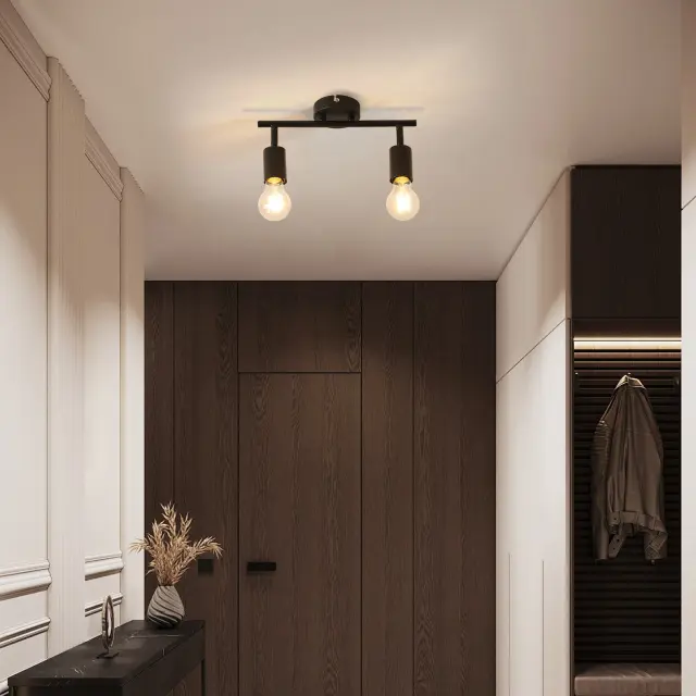 NETTLIFE Stropna svetilka Črna 2 žarnici Stropni reflektor E27 Vintage Industrijska
