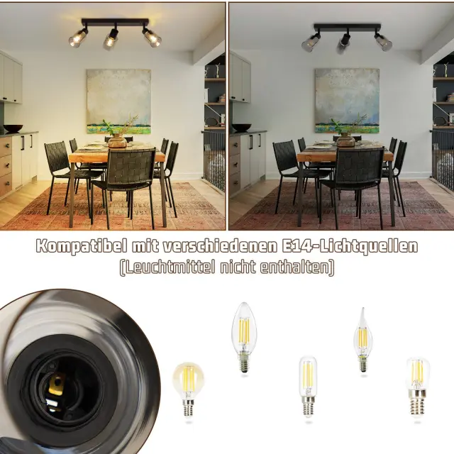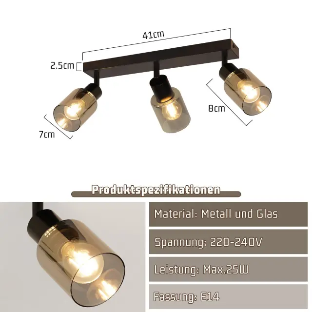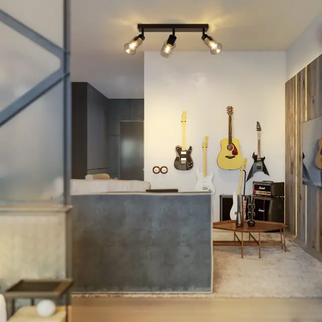 NETTLIFE Stropna svetilka, reflektor, 3 plameni, črna, industrijska, E14, stropna svetilka za dnevno sobo