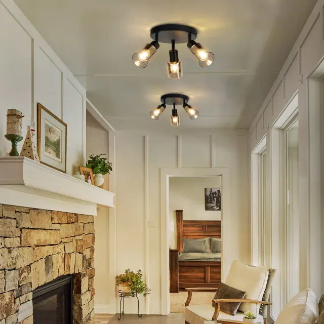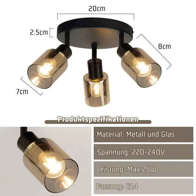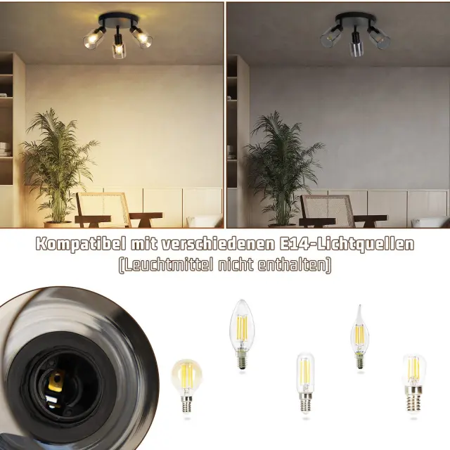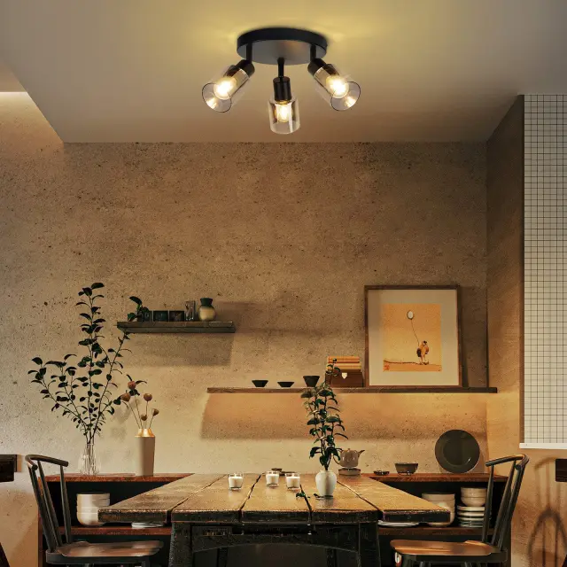 NETTLIFE Stropna svetilka, reflektor, 3 plameni, črna, industrijska, E14, stropna svetilka za dnevno sobo