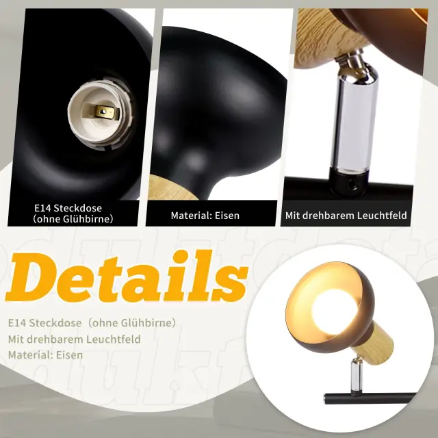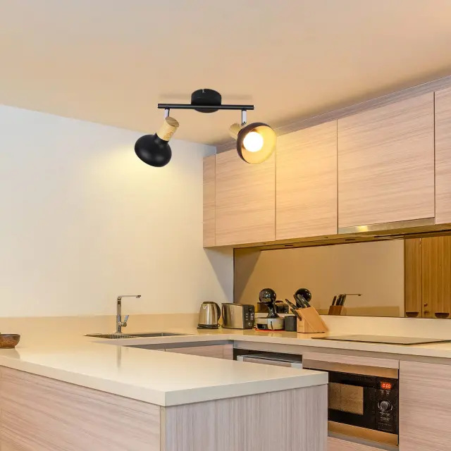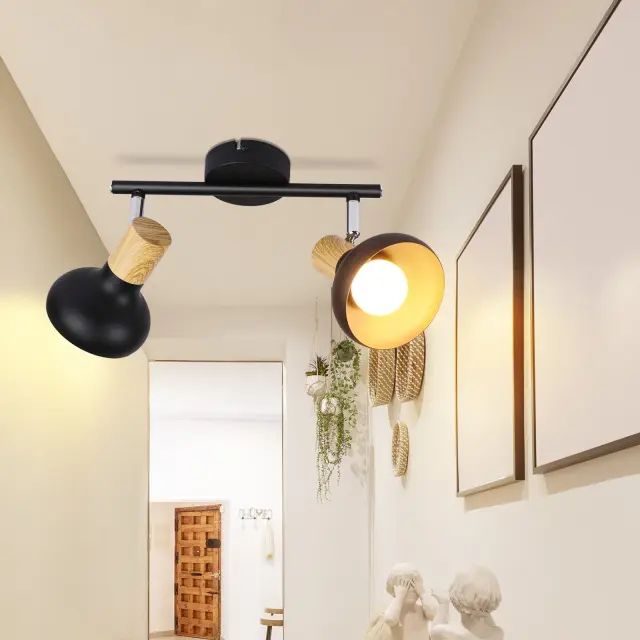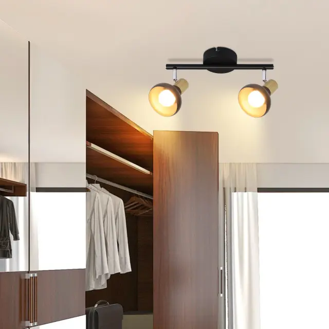 NETTLIFE Stropna svetilka, reflektor, 2 plamena, E14, vintage črna, stropna svetilka za dnevno sobo, hotel