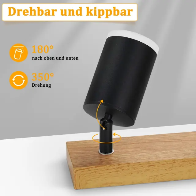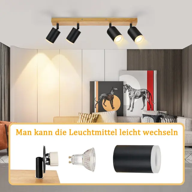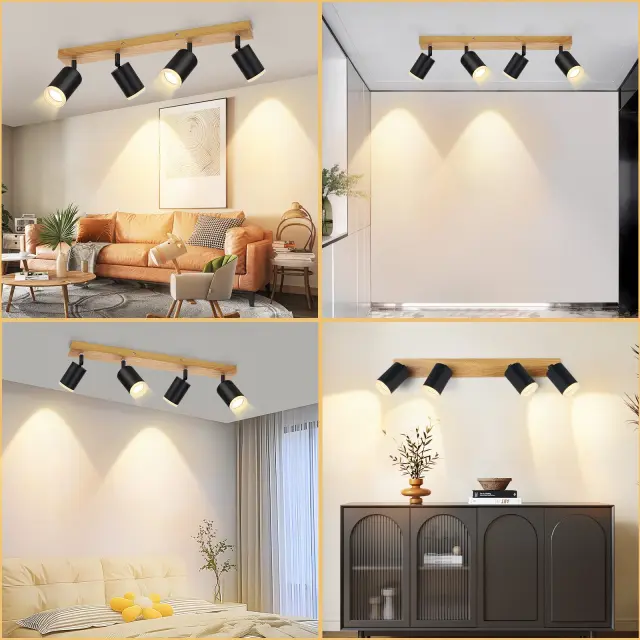 NETTLIFE Stropna svetilka, stropni reflektor, 4 plameni, lesena stropna svetilka GU10 355, nastavljiva, črna, vintage, industrijska