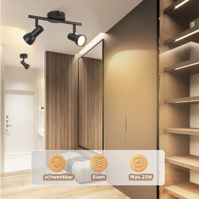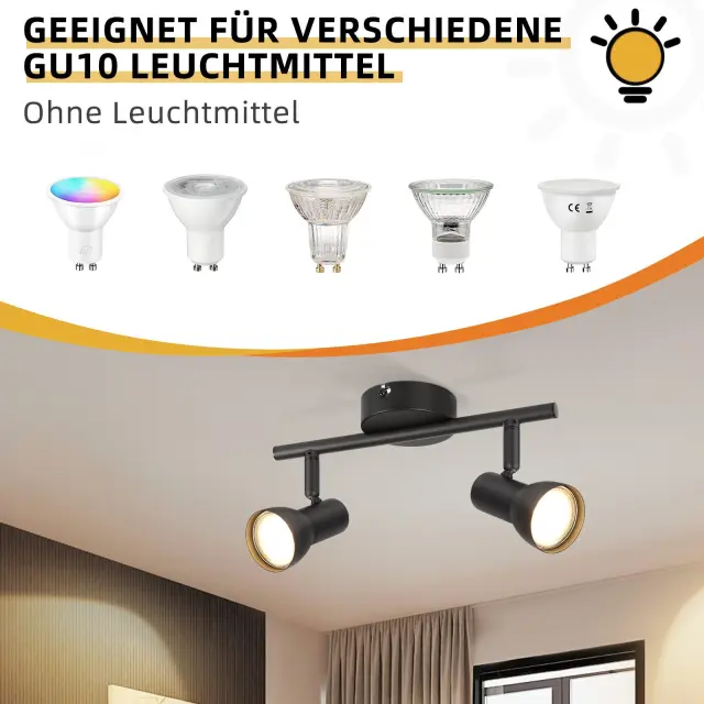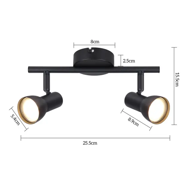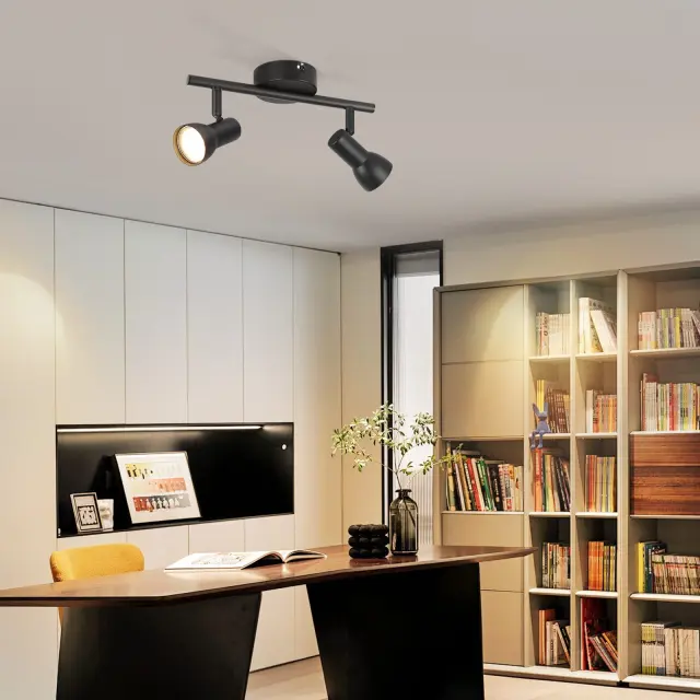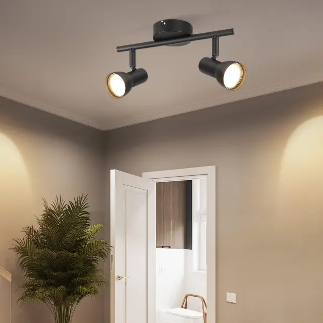 NETTLIFE stropna svetilka z 2 plamenoma, črna, moderna, GU10, kovinska, vrtljiva za 350°