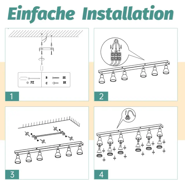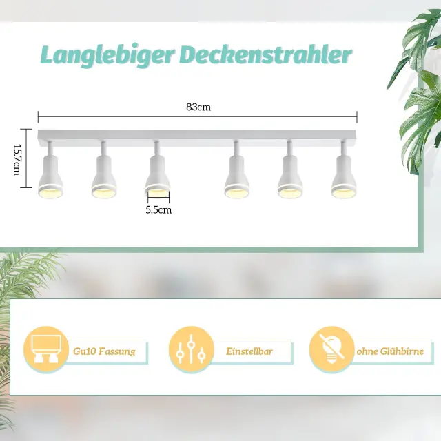 NETTLIFE stropna svetilka s 6 reflektorji, bela: kovinska stropna svetilka GU10, vrtljiva notranja svetilka za pisarno in dnevno sobo, brez žarnic