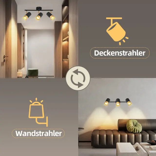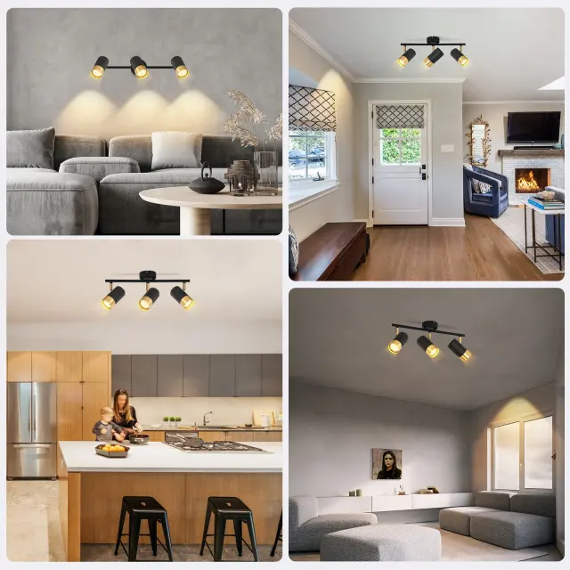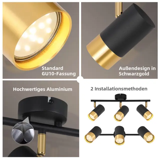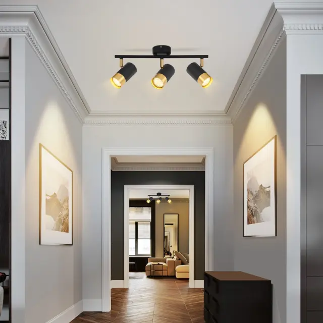 NETTLIFE Stropna svetilka GU10 za hodnik Črno-zlata vintage vrtljiva svetilka za dnevno sobo, spalnico, kuhinjo