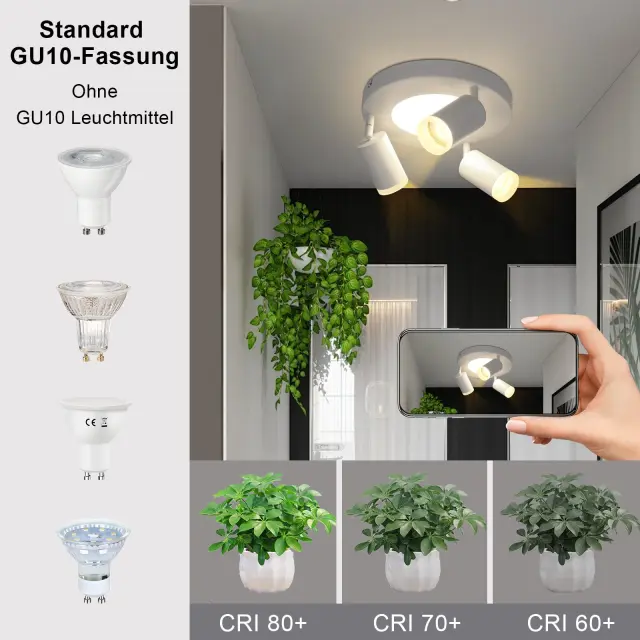 NETTLIFE Stropna svetilka 3 žarnice GU10 20W spalnica 3000k kuhinjska svetilka kovinska nastavljiva