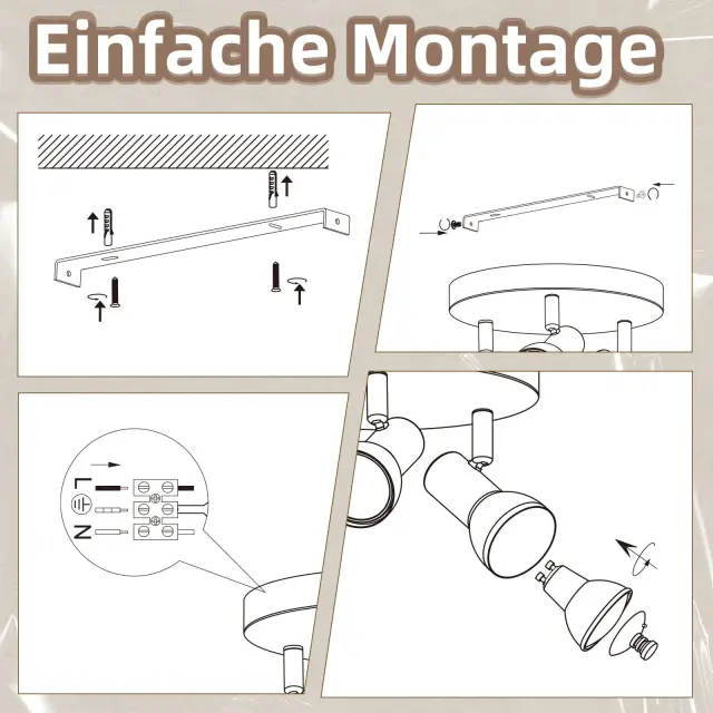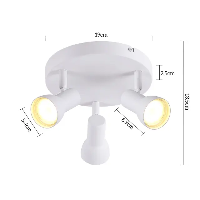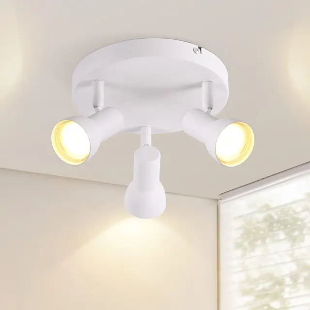 NETTLIFE stropna svetilka s 3 plameni, okrogla, notranja osvetlitev, bela, kovinska, podnožje GU10