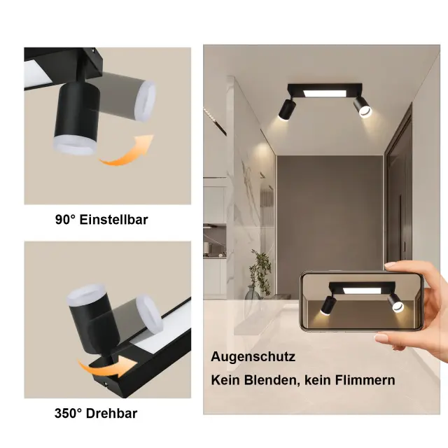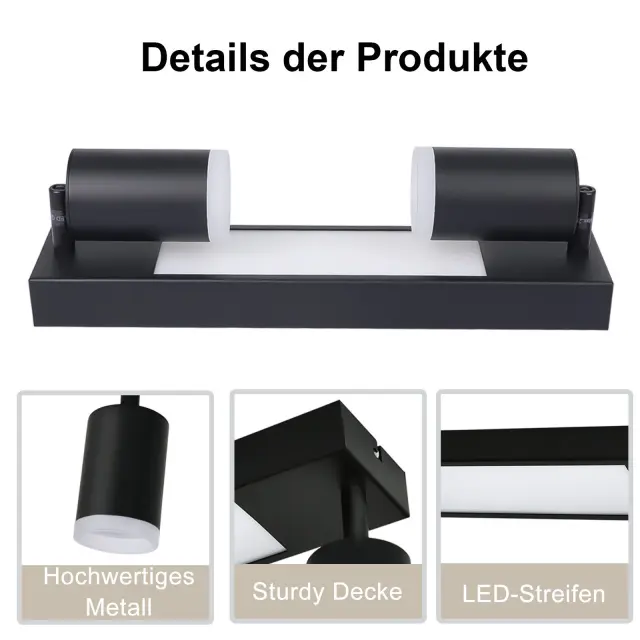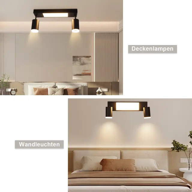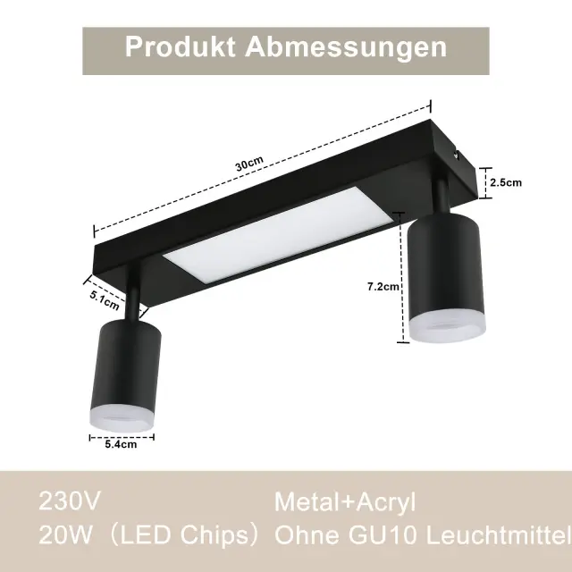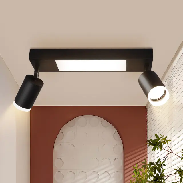 NETTLIFE Stropna svetilka 2 žarnici GU10 spalnica 3000k 20W kuhinja črna toplo bela nastavljiva kovinska za