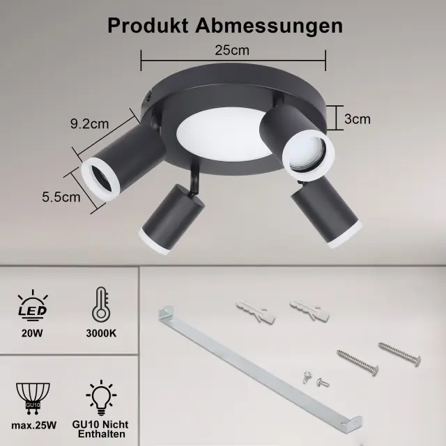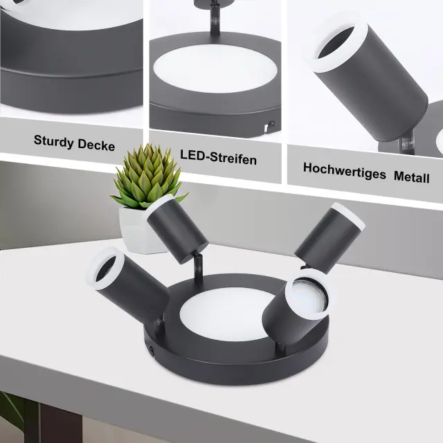 NETTLIFE Stropna svetilka 4 žarnice GU10 20W spalnica 3000k črna vrtljiva vrtljiva kovinska