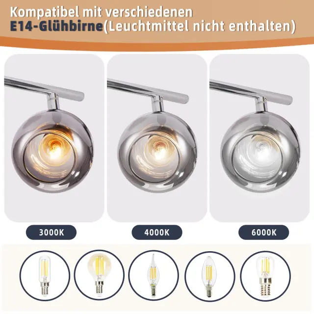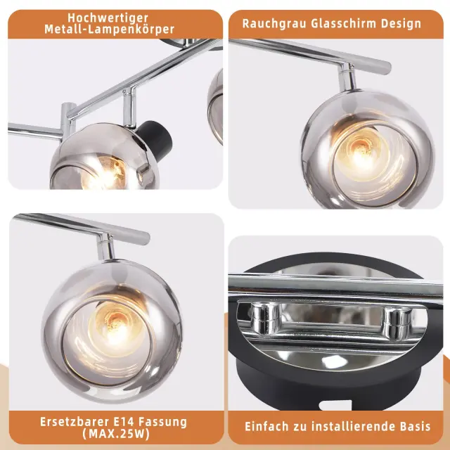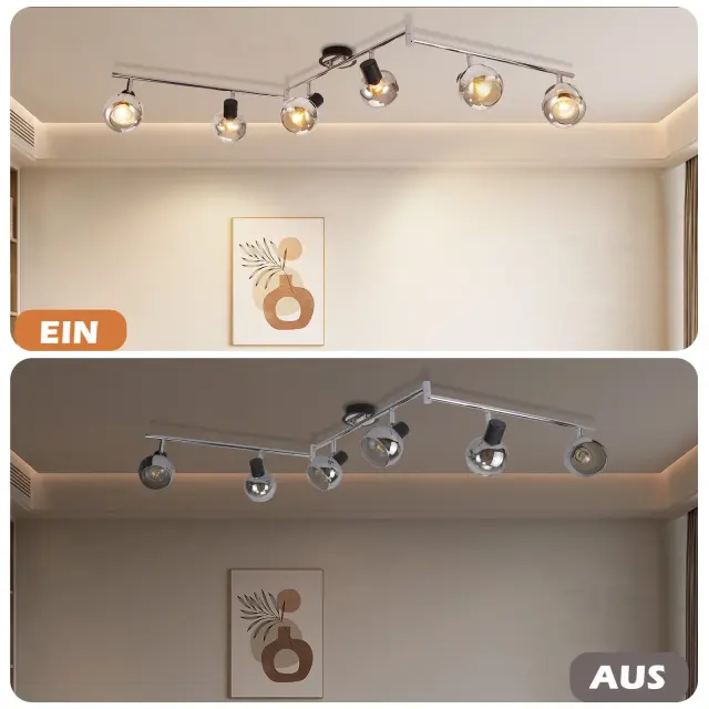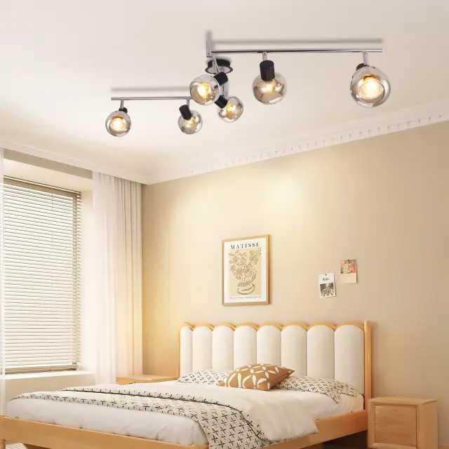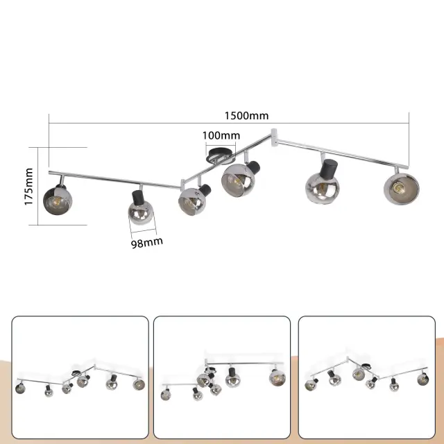 NETTLIFE Stropna svetilka, reflektor, E14, moderna, dimljena steklena, 6 plamenov, vrtljiva za 350°