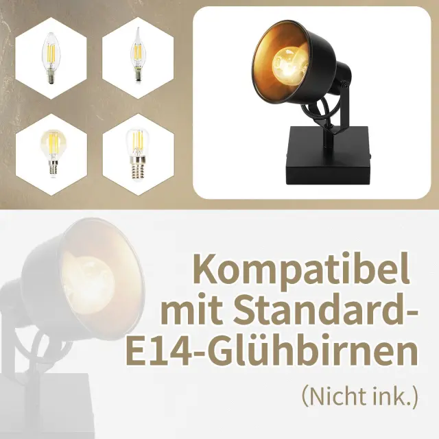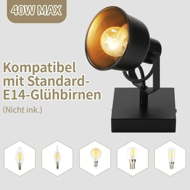 NETTLIFE Stropna svetilka 1 plamen vintage stenska svetilka E14 retro dizajn visokokakovostna nastavljiva MAX. 40 W