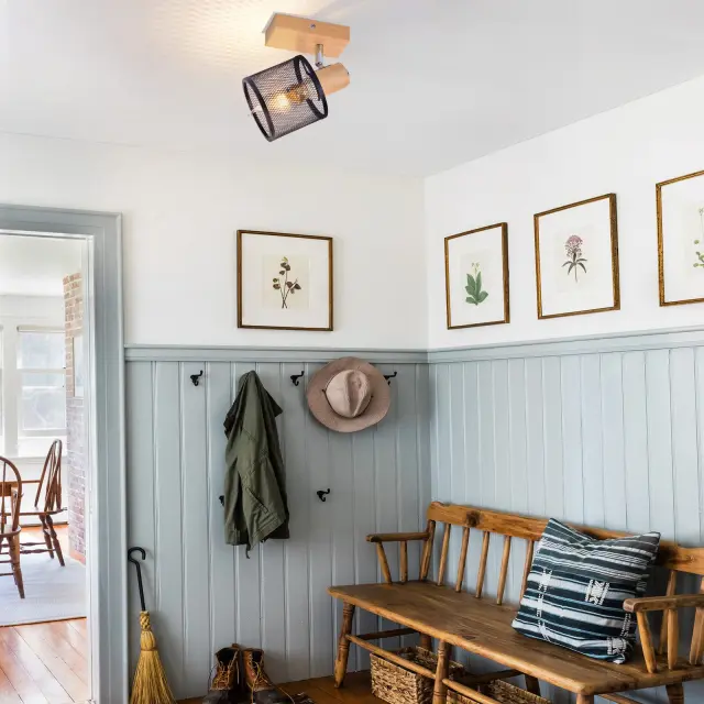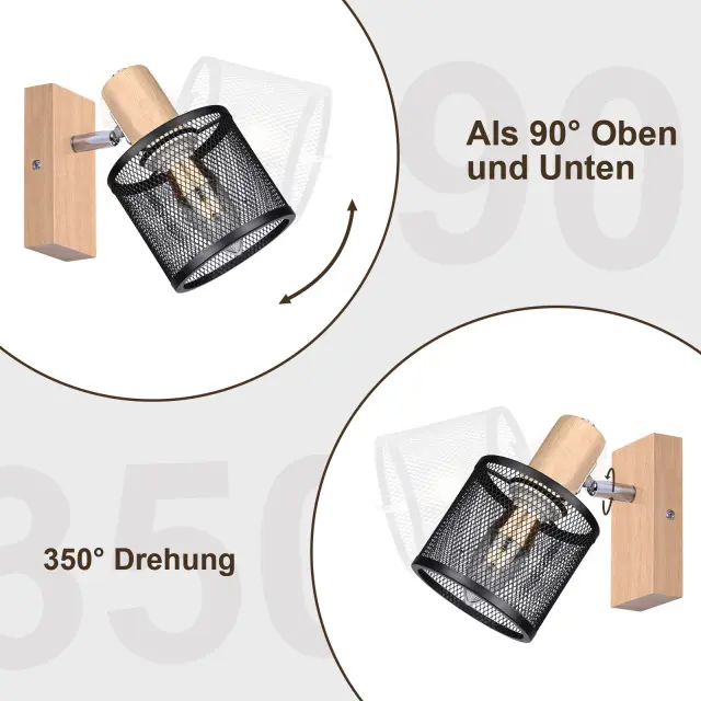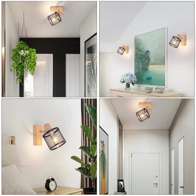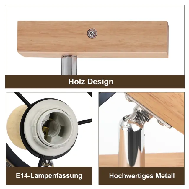 NETTLIFE Stropna svetilka 1 žarnica, črn lesen videz - stropna svetilka E14, 4 žarnice max 40W, moderna za dnevno sobo, spalnico, kuhinjo.