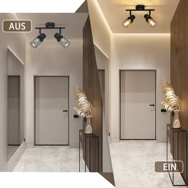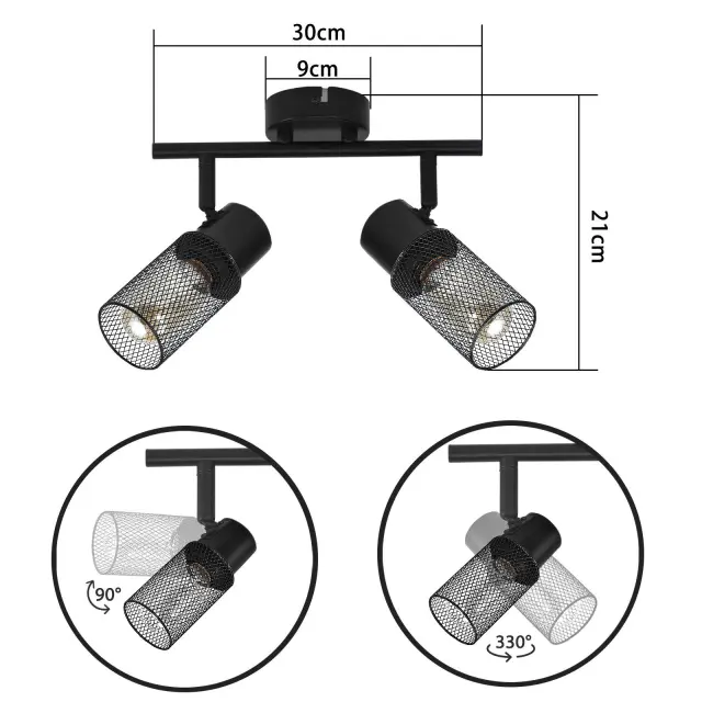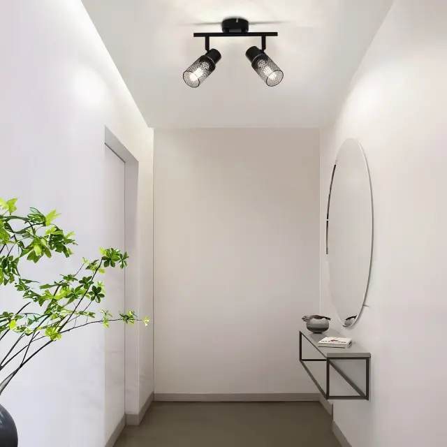 NETTLIFE Stropna svetilka 2 reflektorja črna kovinska industrijska E27 LED za hodnik dnevna soba spalnica jedilnica vhodna vrata brez žarnice