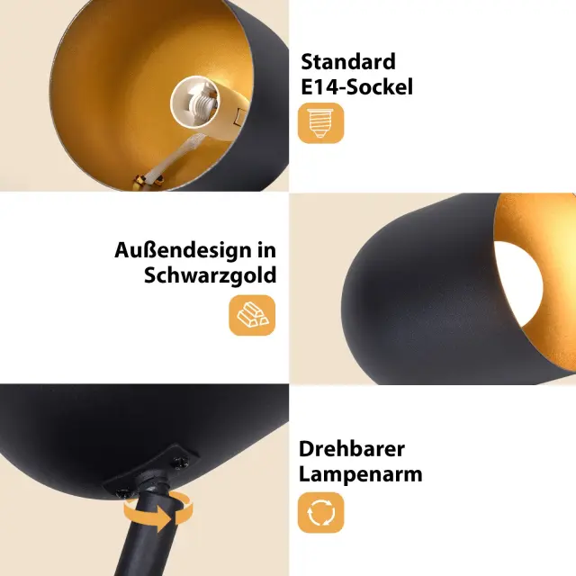 NETTLIFE Stropna svetilka E14 Stropni reflektor Zlato Črna Vintage Industrijska Svetilka za Hodnik