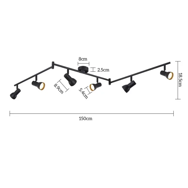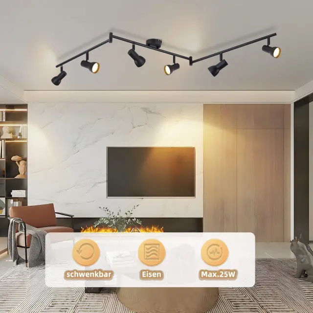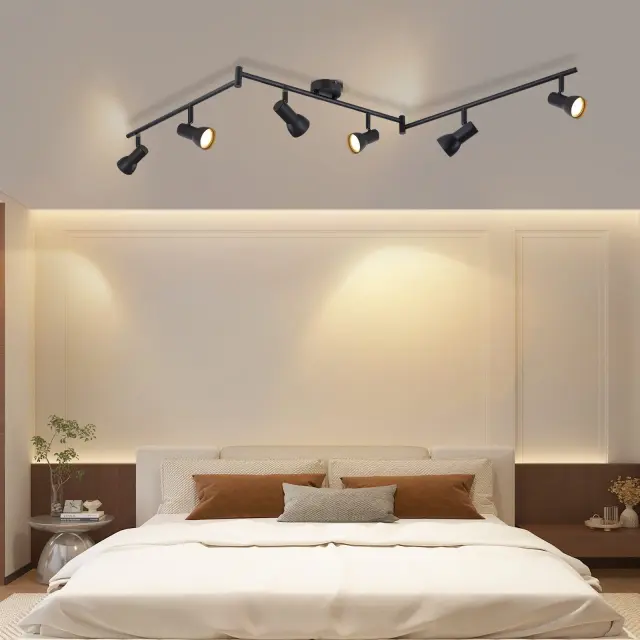 NETTLIFE stropna svetilka s 6 lučkami GU10 črne barve za spalnico in hodnik