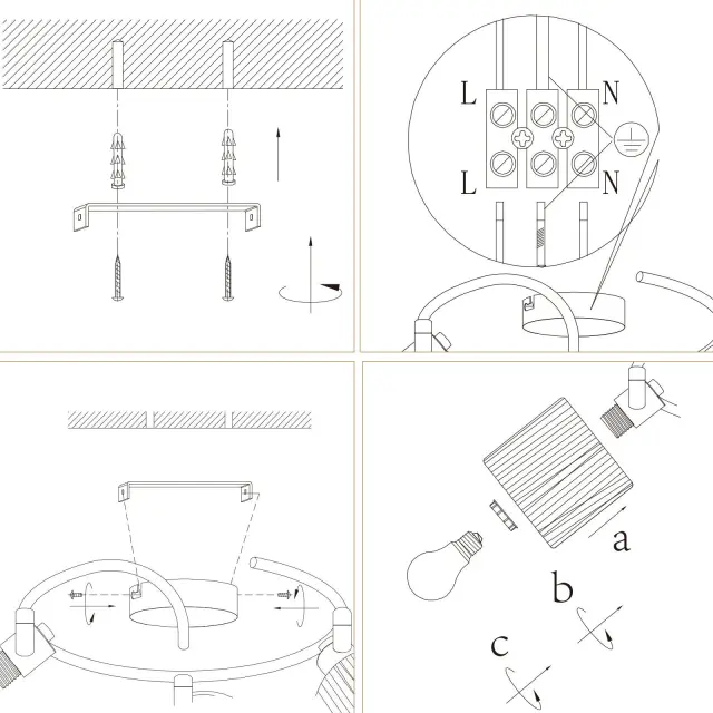 NETTLIFE Stropna svetilka s 3 plameni, E14, naravno črna, papirnata, za dnevno sobo