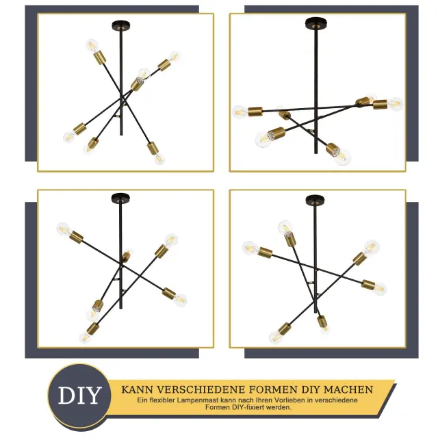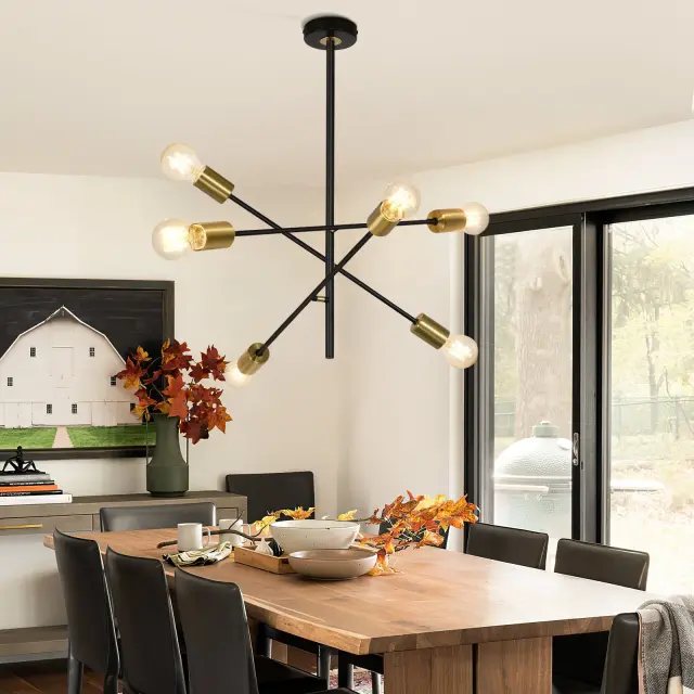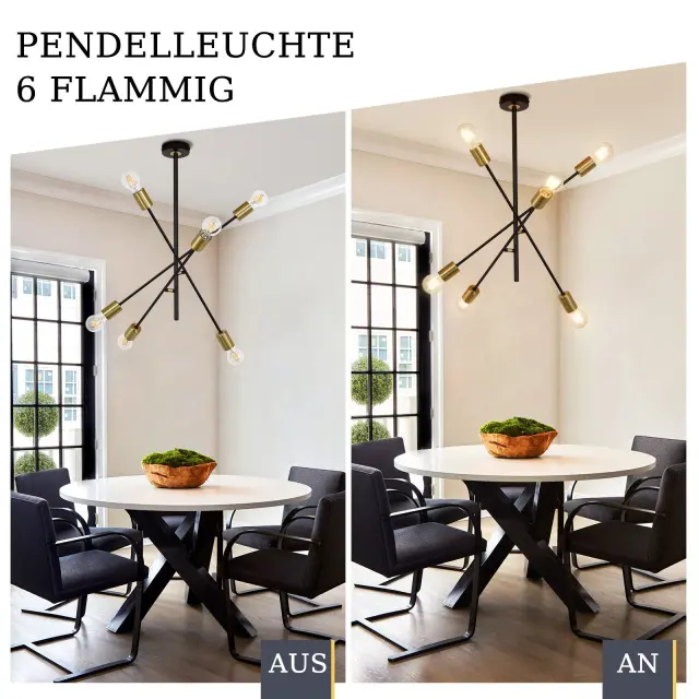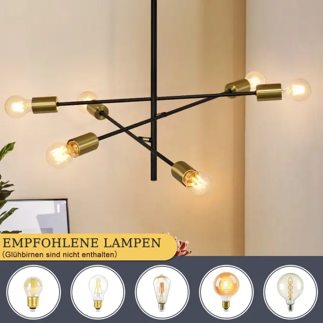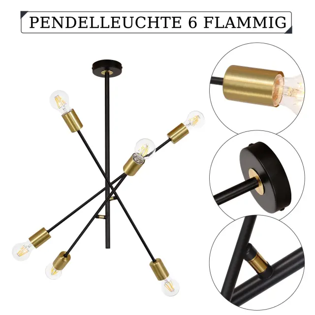 NETTLIFE Stropna svetilka za dnevno sobo, vintage viseča svetilka s 6 črnimi žarnicami E27 v industrijskem slogu