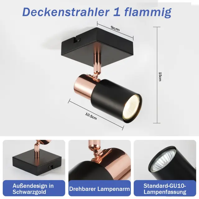 NETTLIFE Stropni reflektorji Stropni reflektorji 1 žarnica GU10 Črna