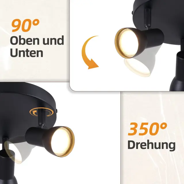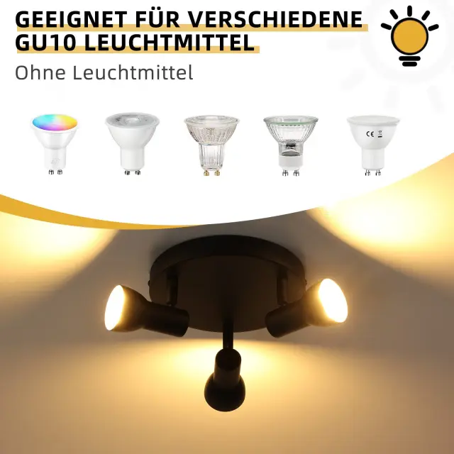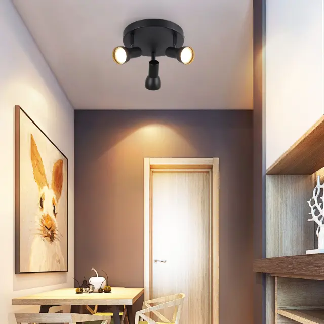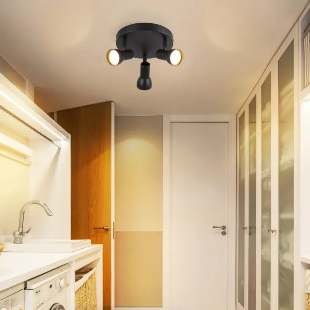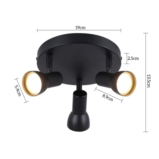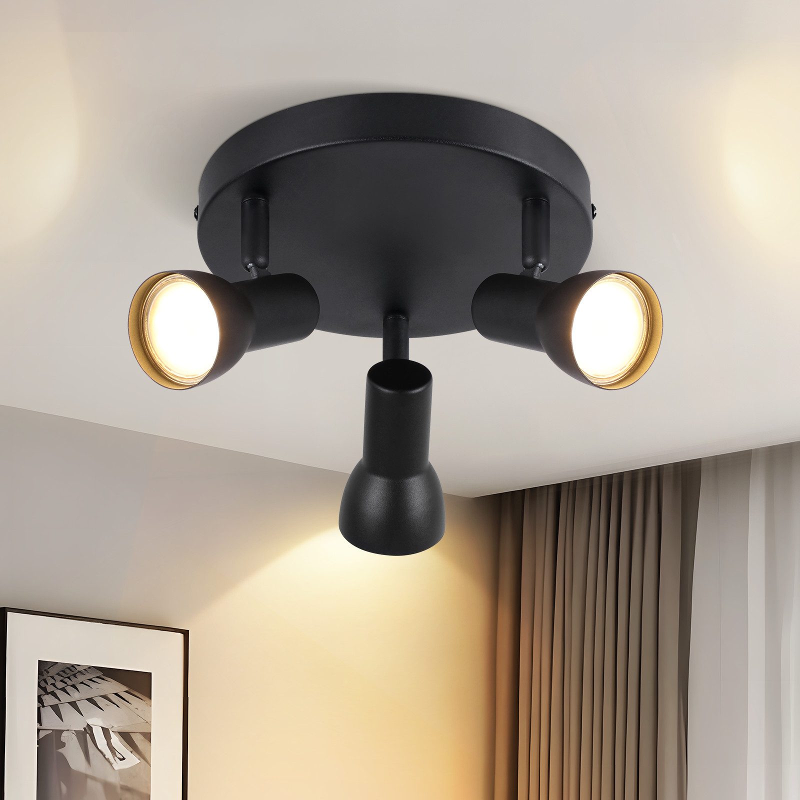 NETTLIFE stropni reflektor s 3 plameni, črna stropna svetilka, moderna oblika, okrogli kovinski stropni reflektorji, podnožje GU10