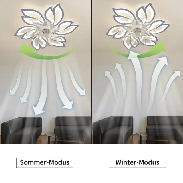 NETTLIFE Stropni ventilator z lučjo in daljincem - Zatemnilna LED stropna svetilka, funkcija časovnika, kreativna zasnova 6 luči