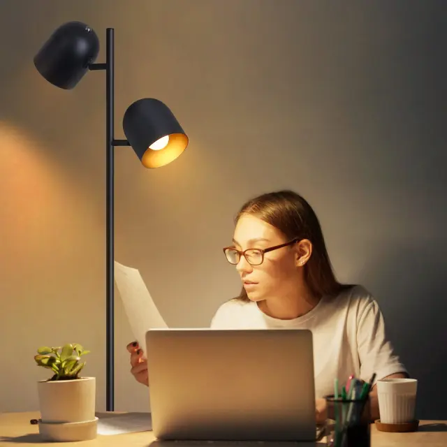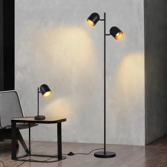 NETTLIFE talna svetilka 2 žarnici črno-zlata kovinska E14 retro industrijska talna svetilka