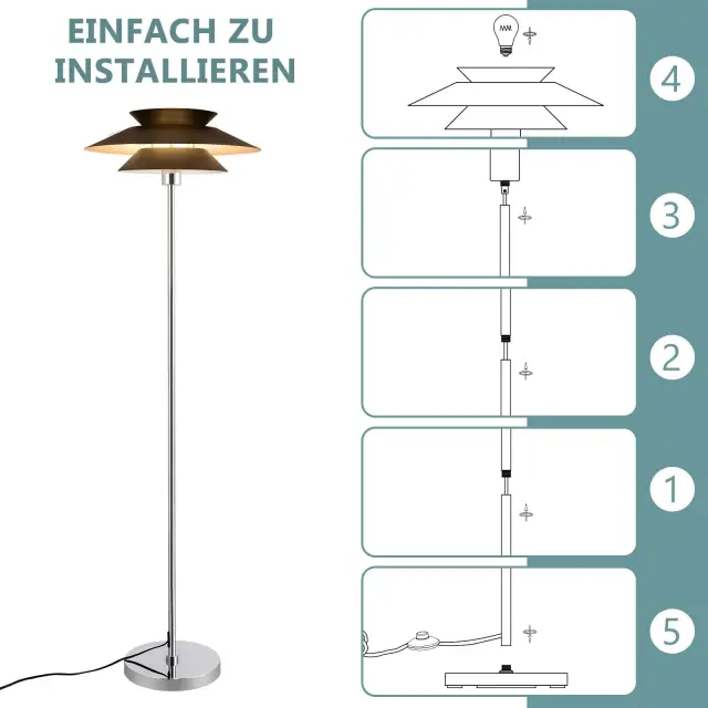 NETTLIFE talna svetilka za dnevna soba črna moderna E27 1 plamen z nožnim stikalom vintage kovinska industrijska oblika višina 145 cm