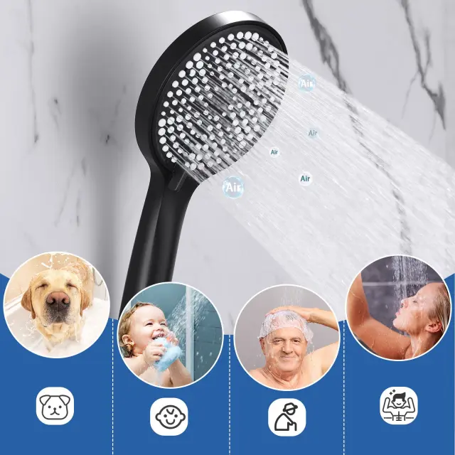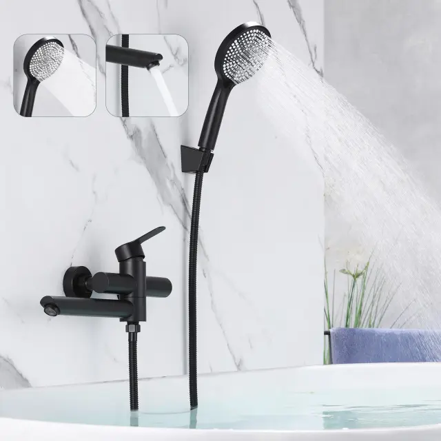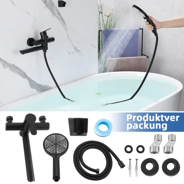 Nettlife tuš komplet s pipo za kad in 3-funkcijsko ročno prho, črne barve