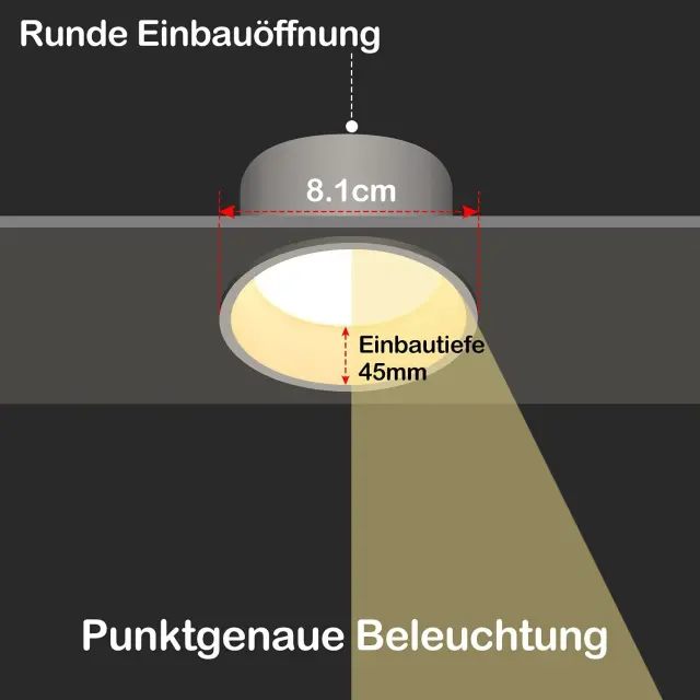 Uporabno okolje: Okrogla oblika z belo površino izgleda izjemno preprosto, zato se lahko energetsko varčni vgradni LED reflektor uporablja skoraj povsod.