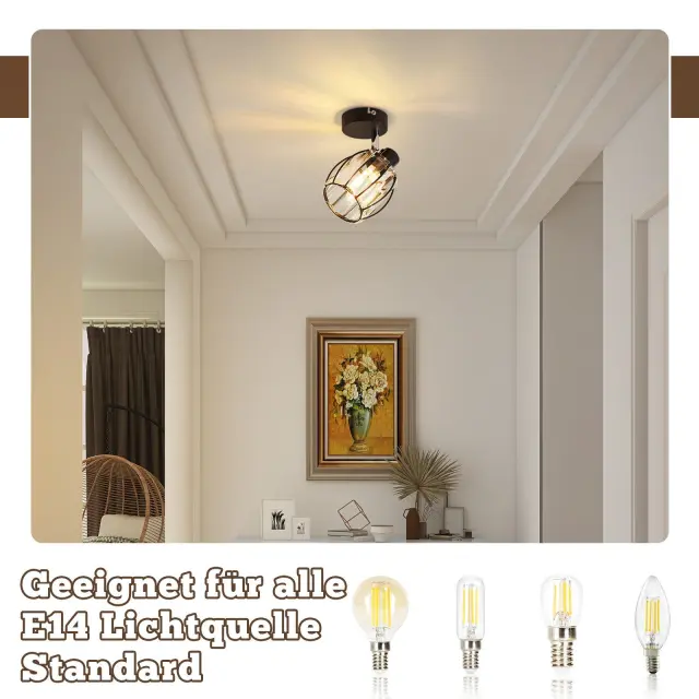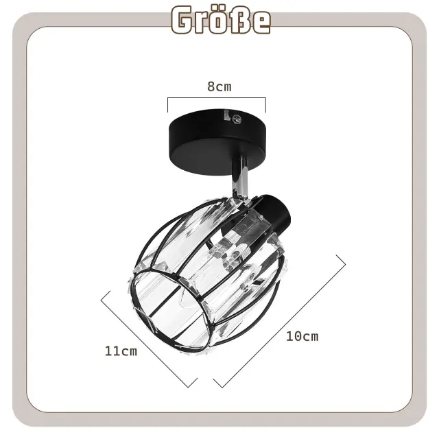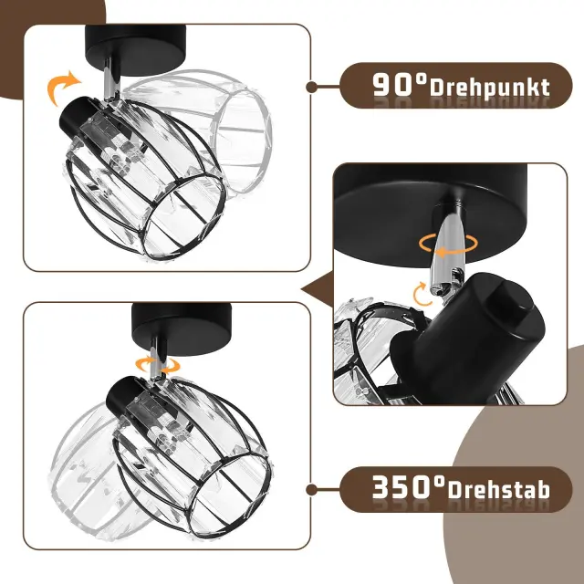 NETTLIFE Vintage črna kristalna stropna svetilka E14 za hodnik 350 nastavljiva industrijska zamenljiva