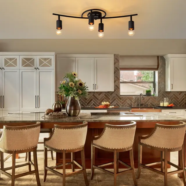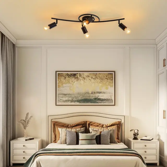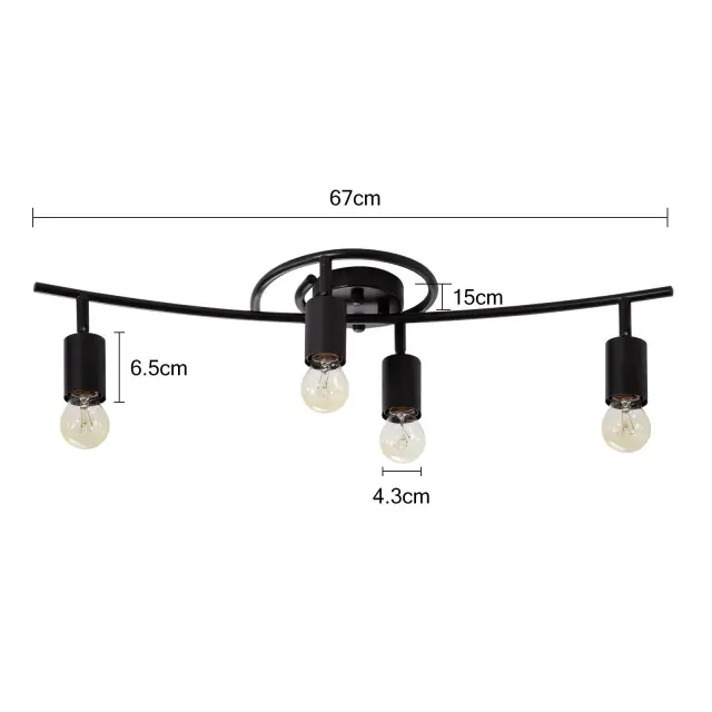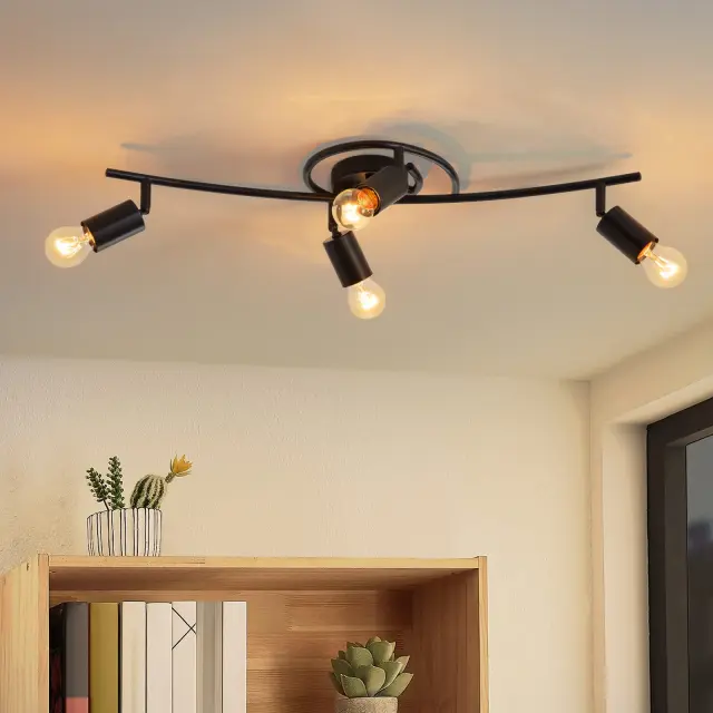 NETTLIFE Vintage črna stropna svetilka s 4 plameni, vrtljiva, 350° industrijska