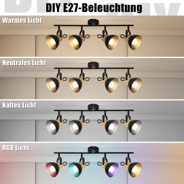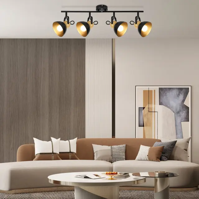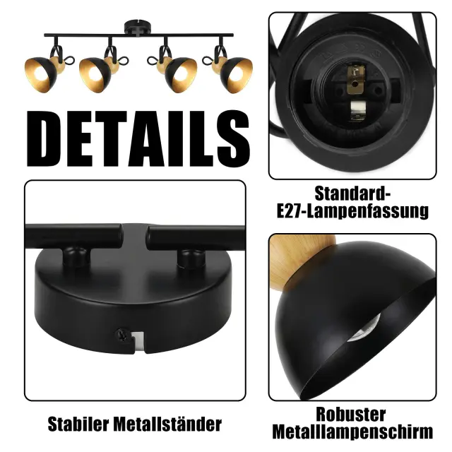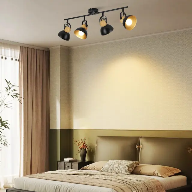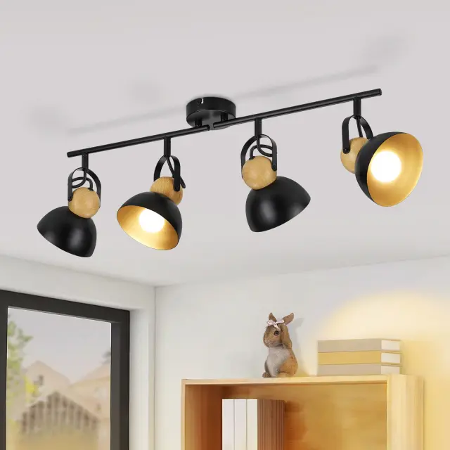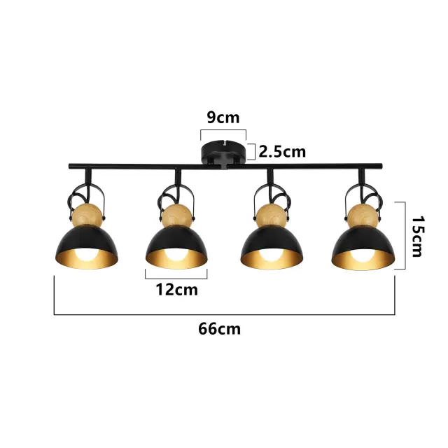 NETTLIFE Vintage črna stropna svetilka E27 nastavljiva svetilka za hodnik retro industrijska kovinska 4 plameni