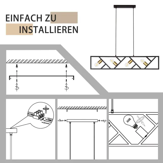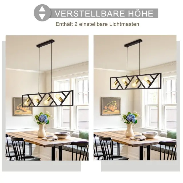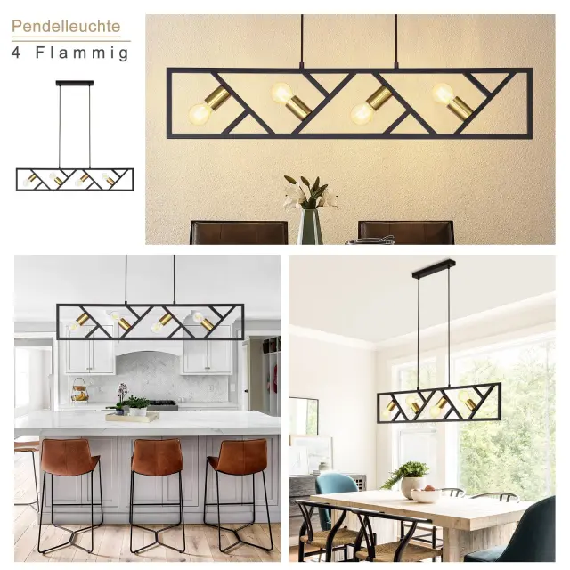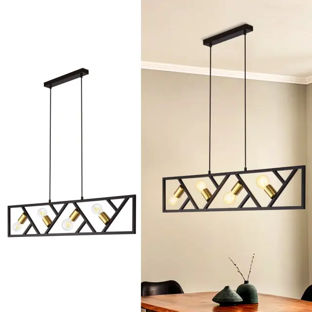 NETTLIFE Vintage obesek črna in zlata 4 žarnice E27 kovina premer 100 cm retro jedilna soba svetilka za dnevno sobo kuhinjo