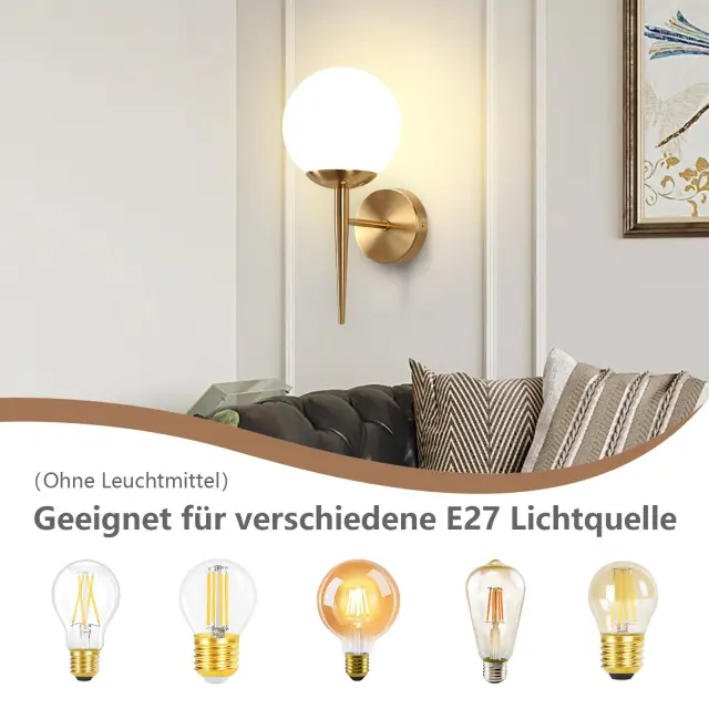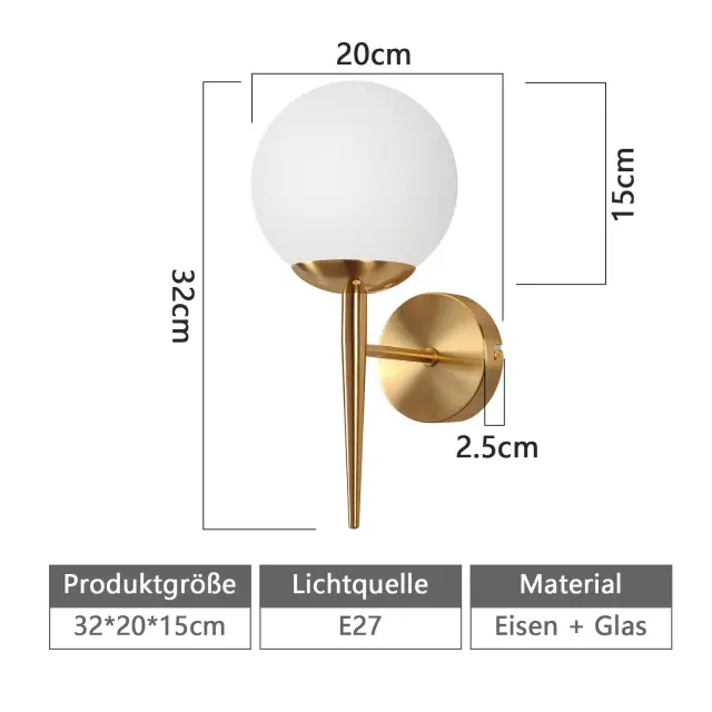 NETTLIFE Vintage stenska svetilka zlata steklena krogla E27 notranja stenska svetilka spalnica stopnišče