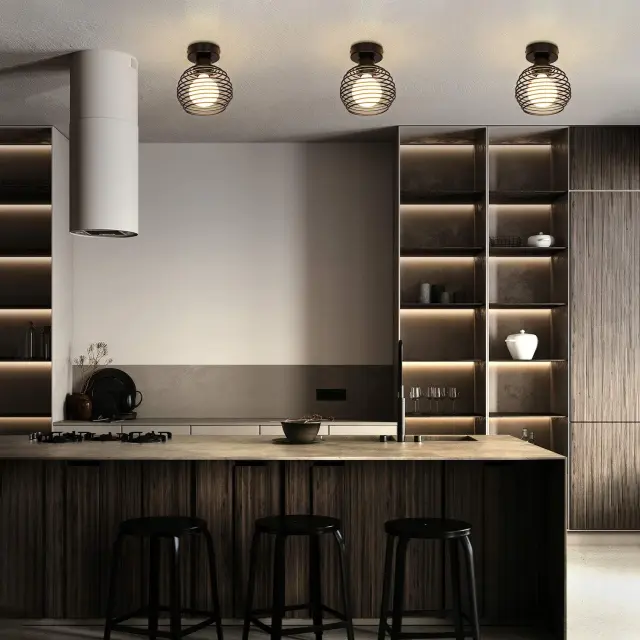 NETTLIFE Vintage stropna svetilka z 2 žarnicama, retro, za hodnik, črna, E27, max. 40 W, brez žarnic