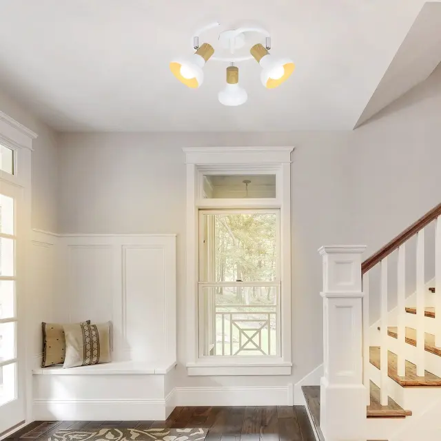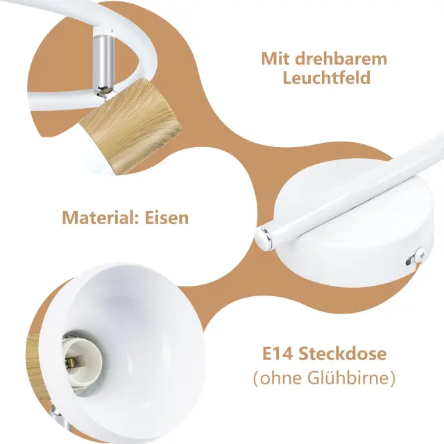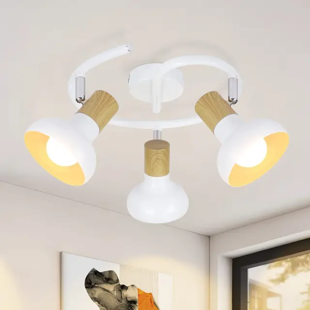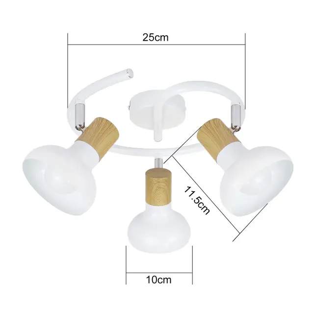 NETTLIFE Vintage stropna svetilka E14, notranja, nastavljiva, bela, brez žarnice, industrijska, 3 luči, okrogla