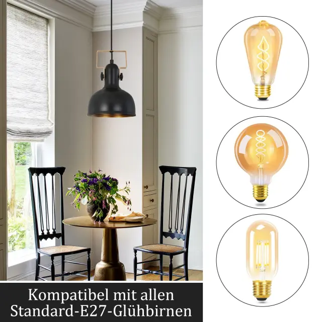 NETTLIFE Vintage viseča svetilka 1 plamen Črna Retro Industrijska E27 MAX.40W