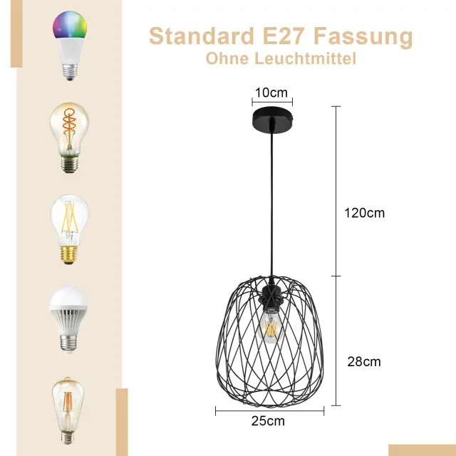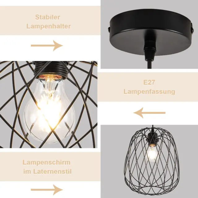 NETTLIFE viseča jedilna miza Vintage - E27 črna kovinska okrogla viseča svetilka