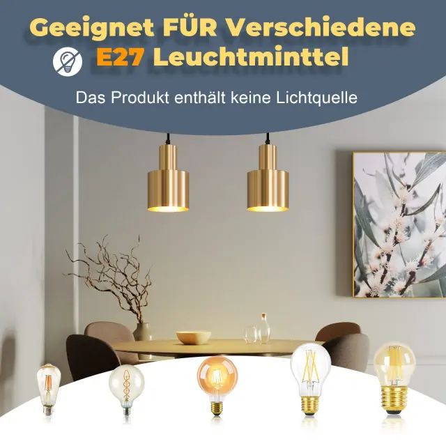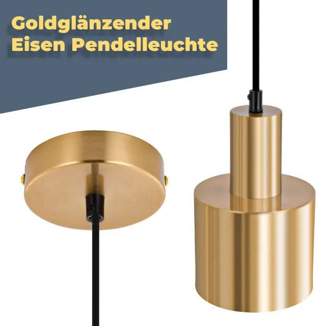Tehnične podrobnosti: Velikost ohišja svetilke: 12*10*143 cm; Velikost stropne plošče: 10 cm; Vir svetlobe: E27*1; Material: Železo; Barva: Zlata