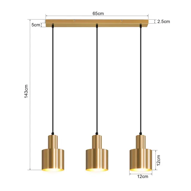 NETTLIFE viseča jedilna miza vintage jedilnica 3 plameni zlata moderna kovinska E27