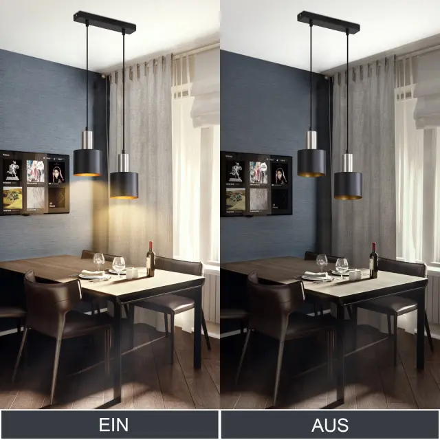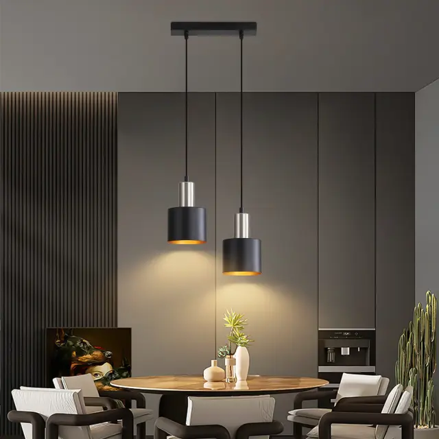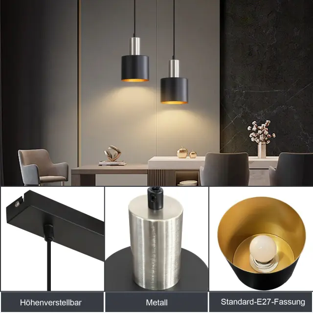 NETTLIFE viseča jedilna miza E27 vintage viseča svetilka z 2 žarnicama, črno-zlata