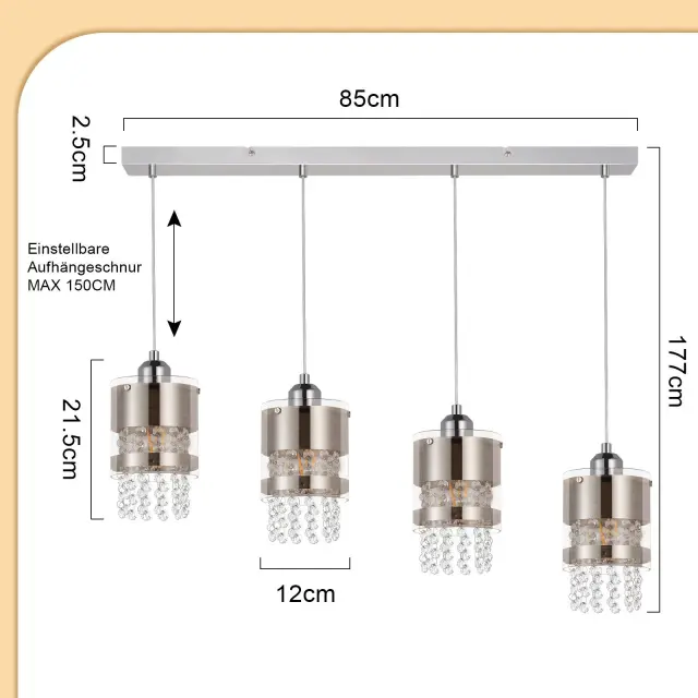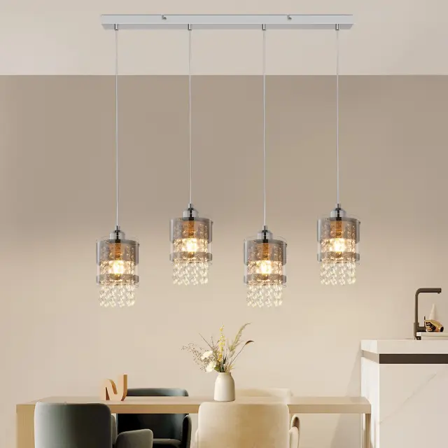 NETTLIFE Viseča jedilna miza Moderna steklena viseča svetilka 4 plameni Viseča 150 cm Nastavljiva po višini Kristal E27