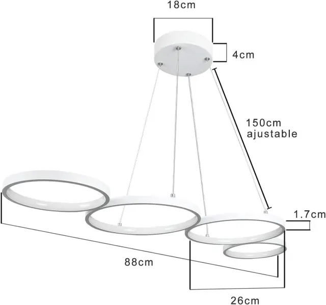 NETTLIFE Viseča LED svetilka Bela Moderna Diam.88cm Jedilna svetilka 4 Obroči Kovinski dizajn Zatemnilna z daljincem