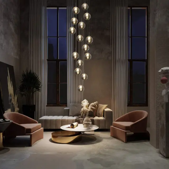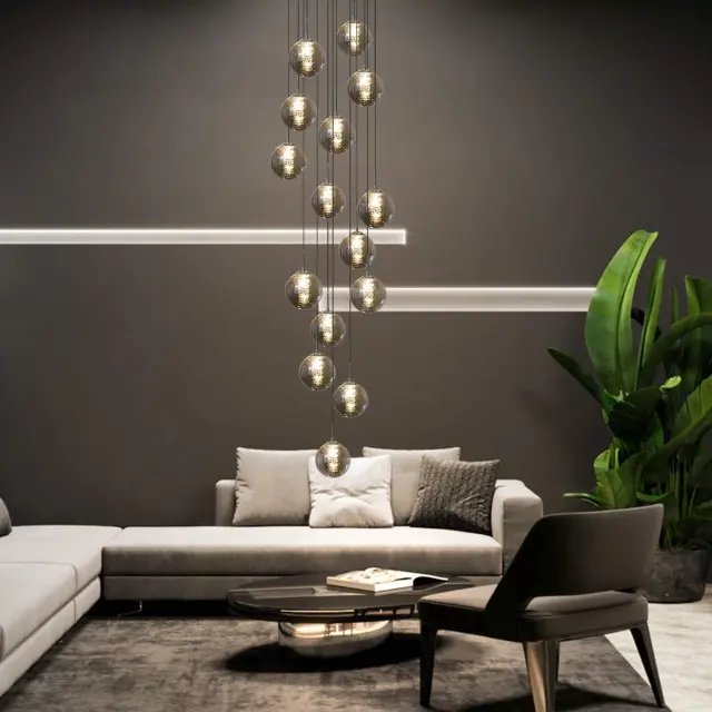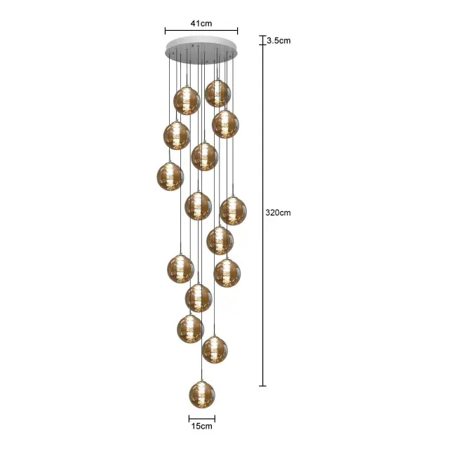 NETTLIFE Viseča nastavljiva jedilna miza Steklena viseča svetilka - Moderna stopniščna kletka s 15 plameni