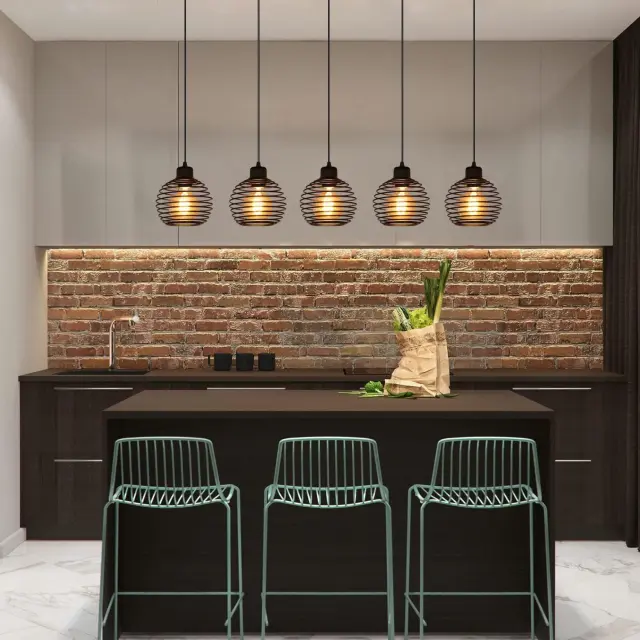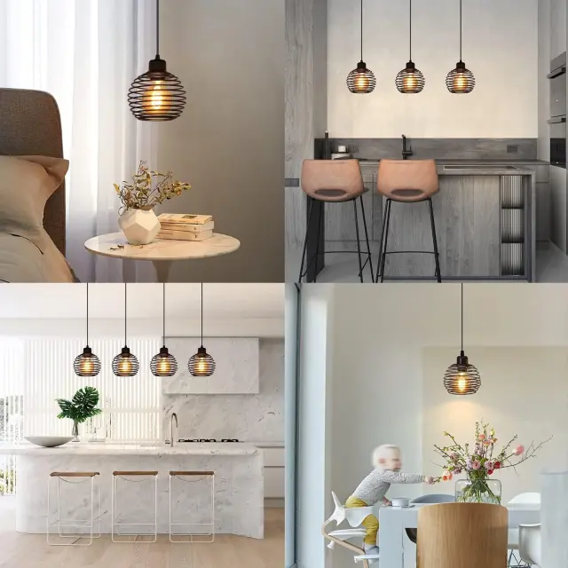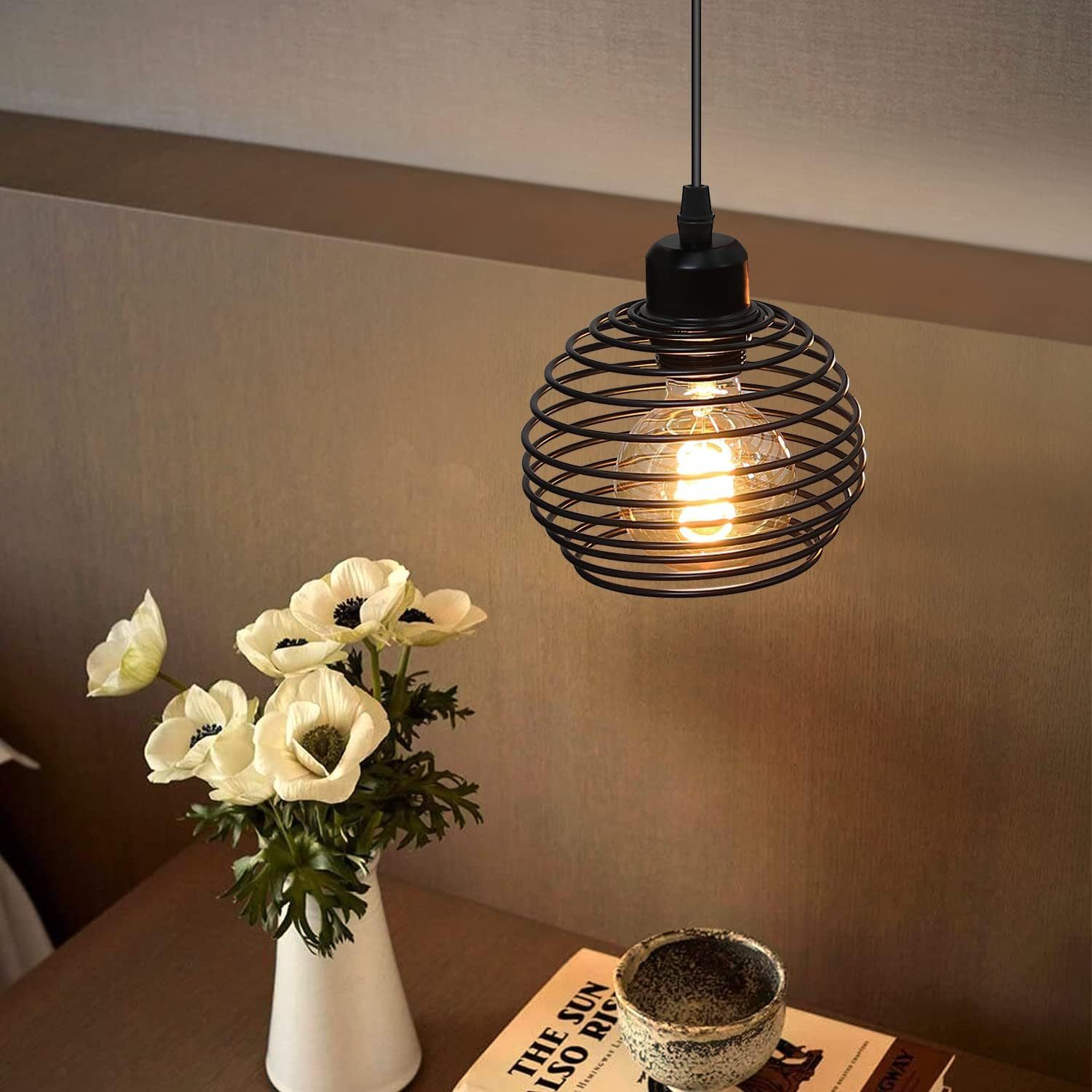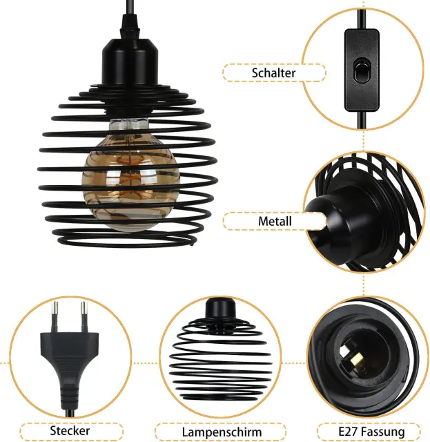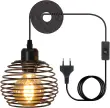 NETTLIFE Viseča svetilka E27 Črna Diam.15cm Vintage vzmetna zasnova Kovina z vtičem in stikalom Retro za dnevno sobo kuhinjo Max.40W